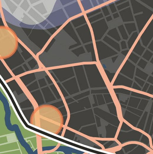 Auf dem Kartenausschnitt unseres Kiezes sieht man da nichts. Er liegt aber vollständig im Bereich der so